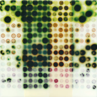Color Chart/Chance Selection acrylic, stains and spray paint on wood panel, 28 x 36 inches • |