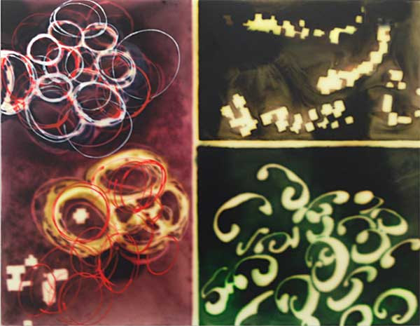 | Cluster-BG4, 2013 acrylic, stains, paint on wood panel, 20 x 16 inches |