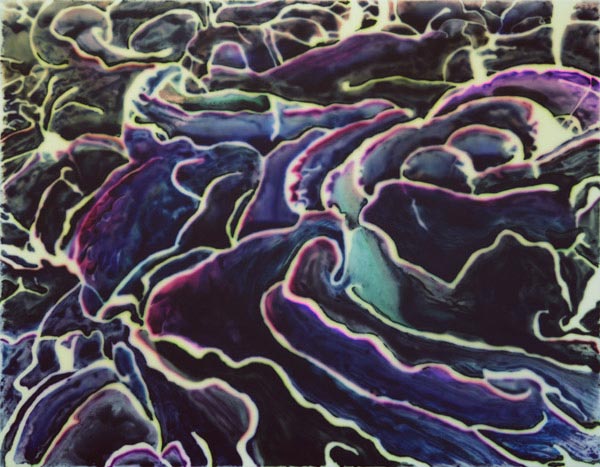 | Lettuce Coral, 2013 acrylic, stains, paint on wood panel, 28 x 36 inches |