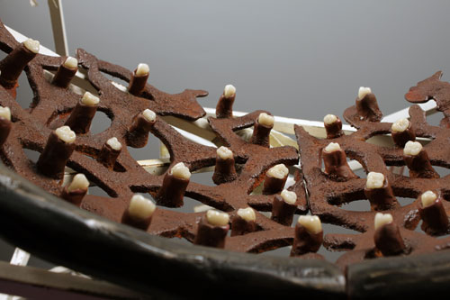 | Hellmouth, 2011, Cast iron, steel, cotton, epoxy, false teeth, 76 x 35 x 28 inches |
