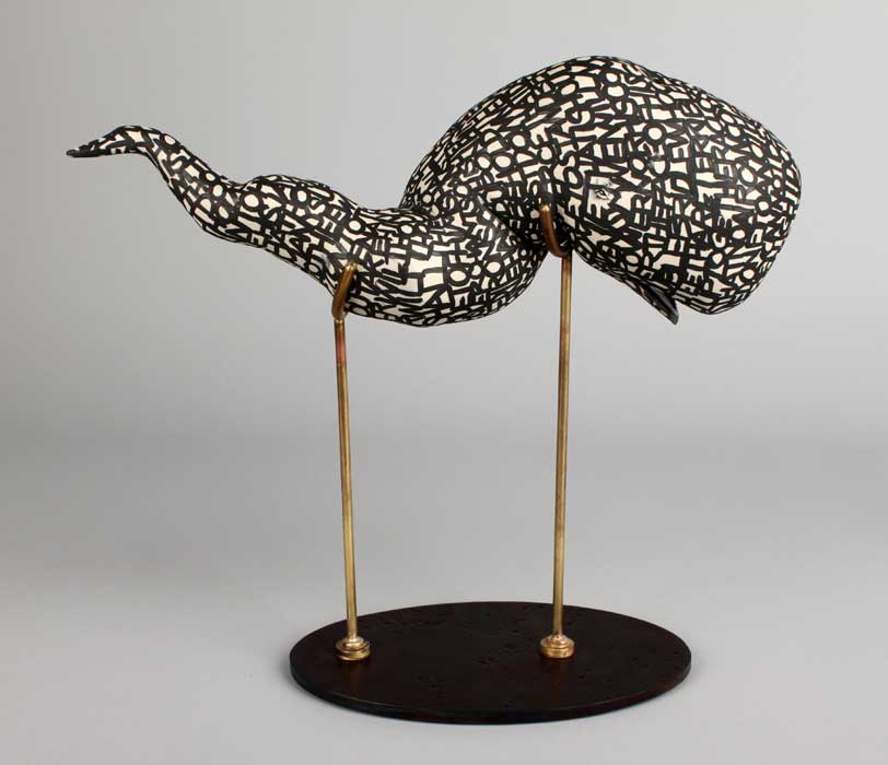 2012, porcelain, glaze, brass, steel, 12 x 13 x 5 inches