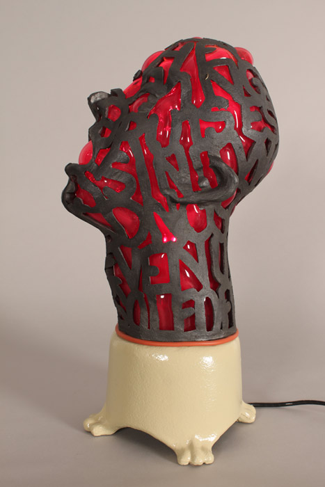 Prophet Lamp, 2011, Cast iron, glass, enamel, rubber, electronics, 20 x 11x 19 inches, SOLD LINK to detail images |