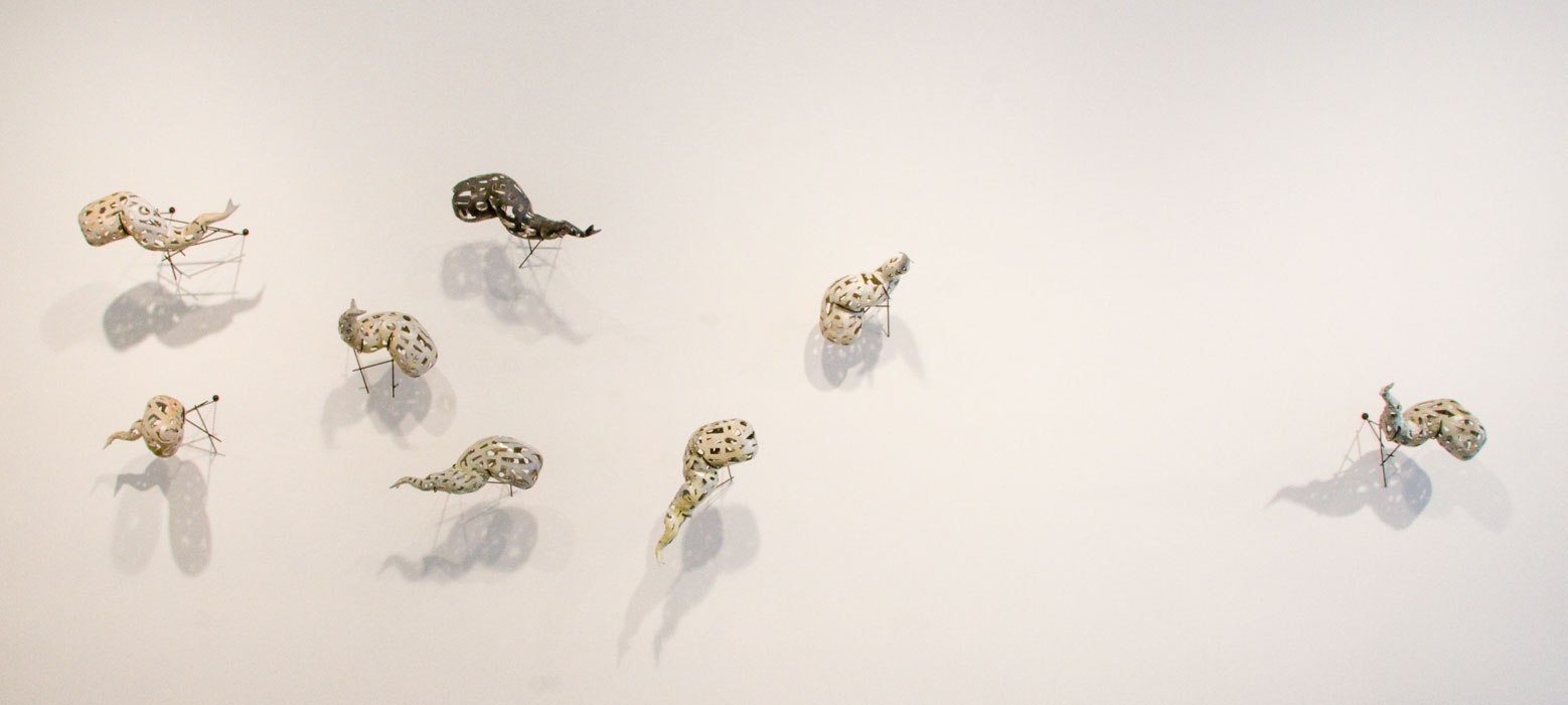 Pierced Leviathan, 2012, soda fired porcelain, brass, dimensions variable LINK to detail images |
