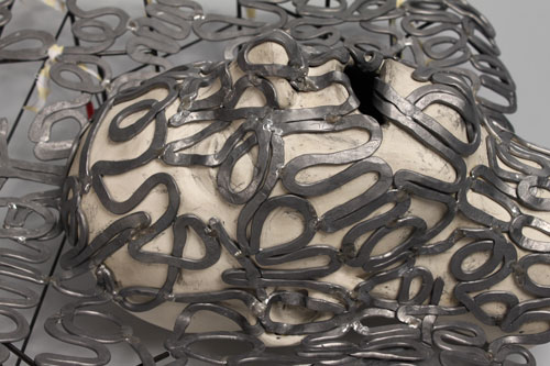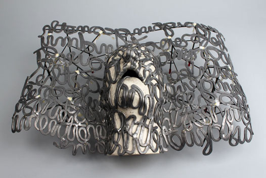| Trouble Came, 2012, ceramic, lead, brass, rubber, cotton, 9 x 24 x19 inches |