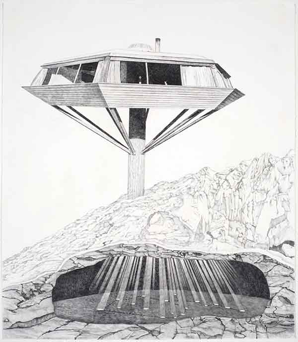 | Unrequited Research Facility graphite and acrylic on paper, 22 x 30 inches, 2008 |