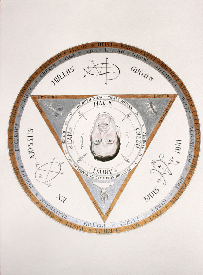 Graphite, watercolor, gouache, adhesive and belief on paper,