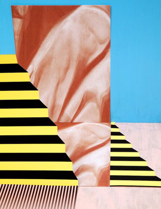 2015, acrylic, stains, spray paint on wood panel, 40 x 50 inches, $14,000