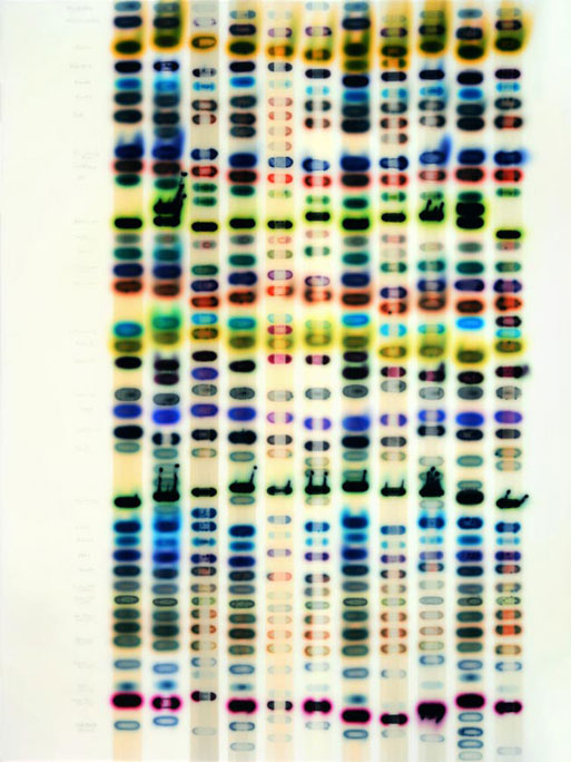 2010, acrylic, dyes, stains, spray paint on wood panel,