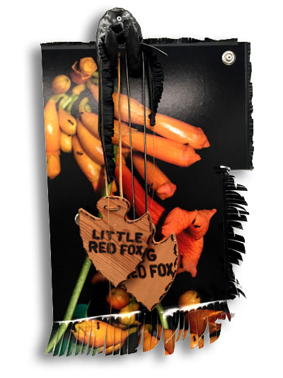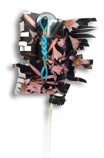 2015, inkjet on aluminum, gaffers tape, glazed ceramic, felt, vinyl and found objects, 17 x 20 x 4 inches, $1,000