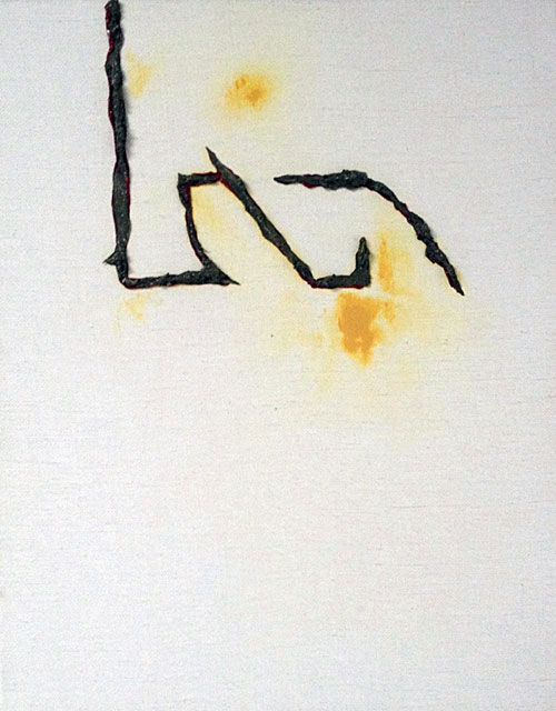 2015, acrylic, stains, and spray paint on wood panel, 40 x 30 inches, $9,500