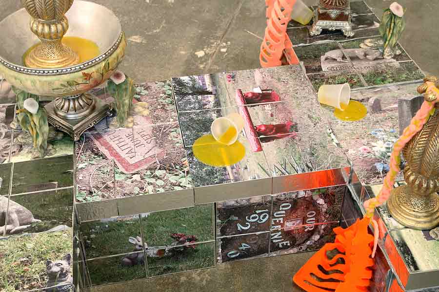 La Beata 2008, polystyrene, archival digital prints, resin objects, polarfleece, silicone, aluminum tape, satin |