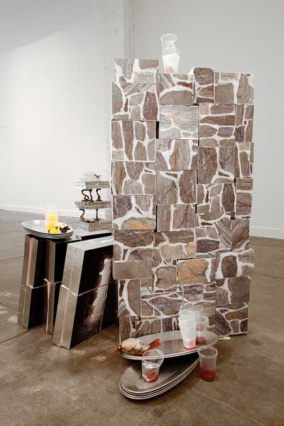 Left Behind 2007, polystyrene, archival digital prints, resin objects, polarfleece, silicone, plastic cups, aluminum tape |