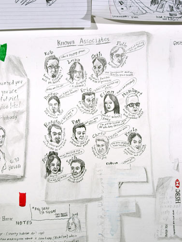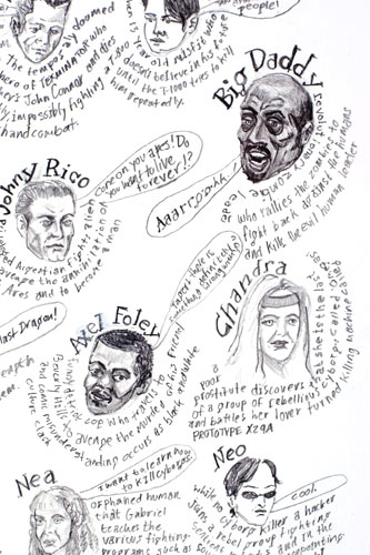 | Everyone I've Ever Met From Memory (that I can remember) detail | Heroes/Villains, detail | F_iendship, dimensions variable, assorted drawings, graphite and goache on paper, 2005, private collection |