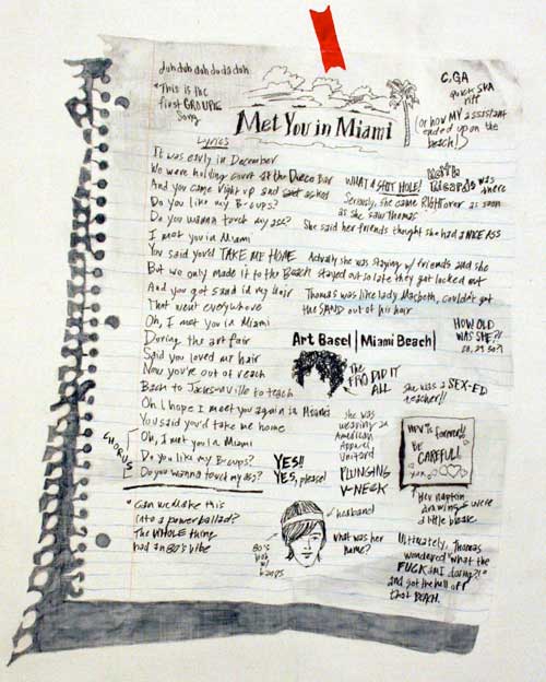 | Lyric Painting (Met You in Miami) 18 x 14 inches, graphite and gouache on panel, 2008 |