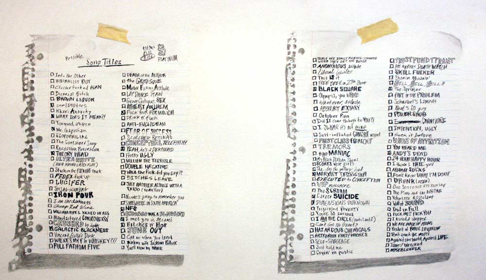 | Possible Song Titles 29.75 x 22 inches, graphite and gouache on paper, 2008 |