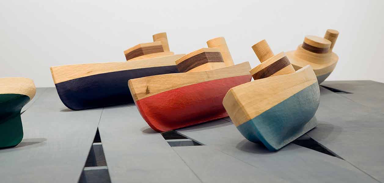 Epochs of Landscape on Its Way to Becoming Commodity 2008, poplar, paint, stain, approx 30.5 x 6 x 11.5 inches each |