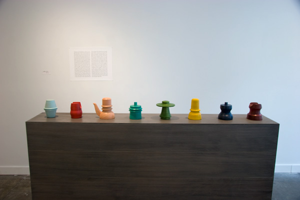 Turning the Sun's Light into Glass carved poplar, acrylic, oil, 50.5 x 10.5 x 10.5 inches overall, plus text piece, 2009 Link to other work by this artist. |