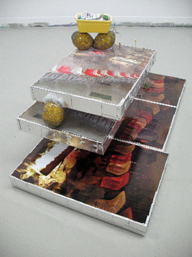 Left Behind (Apport #1) Digital inkjet prints, polyurethanefoam, repurposed objects, 40 x 19 x 19 inches, 2009 Link to other work by this artist. |