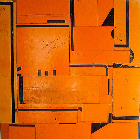 Union Bridge 2000, collaged reflective road construction sign on panel, 48 x 48 x 2 inches, $9,000 |