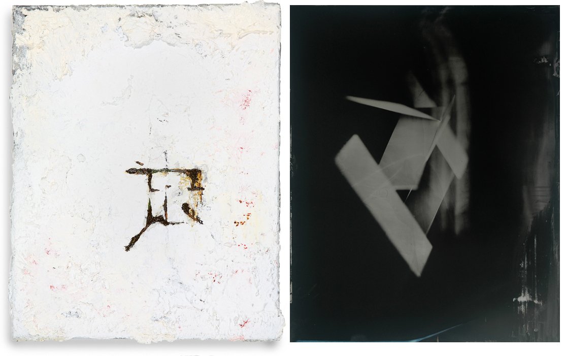 (left) Robert Yoder Untitled, 2013, oil and acylic on canvas, 16 x 20 inches (right) Michelle Kloehn 0741, from Unseen series, 2009, unique tintype, 16 x 20 inches
