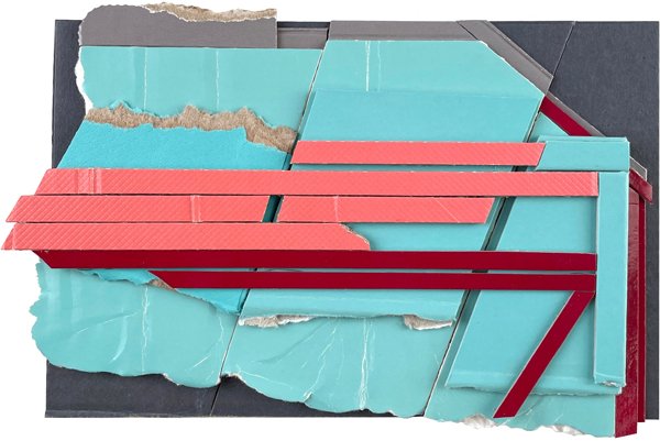 Fit, 2022, found (unpainted) cardboard on paper, 4.25 x 6.5 inches