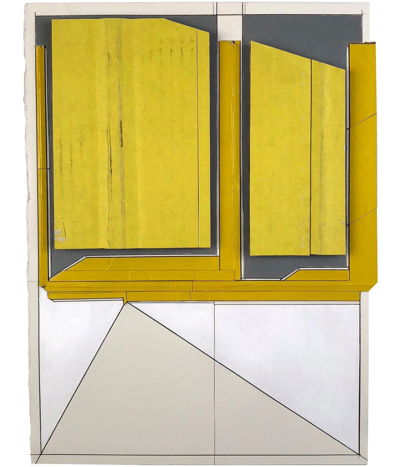 off-sides 2018, cardboard collage, house paint, acrylic, pencil on paper, 14.75 x 11.25 inches, $850