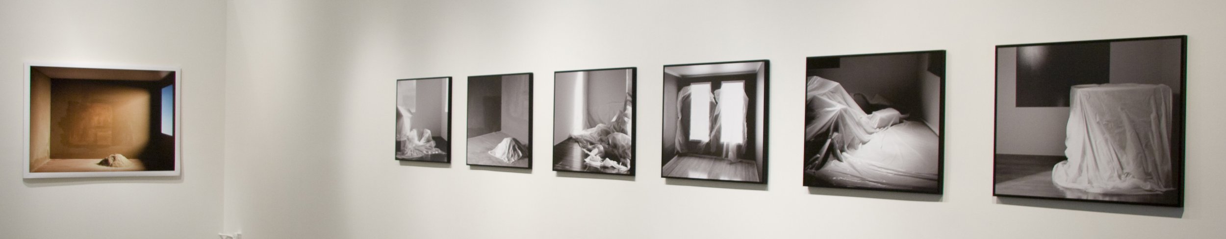 “Ross Sawyers’ photographs hold our interest through a very subtle touch and the strange invention of his stages. With the exception of a few billowing plastic curtains, nothing much happens in these environments. The intensity and quality of the raking light take hold and pull us into a world where nothing seems right. Each space appears solid, but its edges are too sharp and thin. There is little distance between inside and outside, locating a nuanced threat just beyond these rooms. These spaces recall unfinished housing developments and luxury condo projects abandoned by unscrupulous investors, ready to fall down at any moment.” —Andrew Kozlowski, Art Papers, September/October 2009